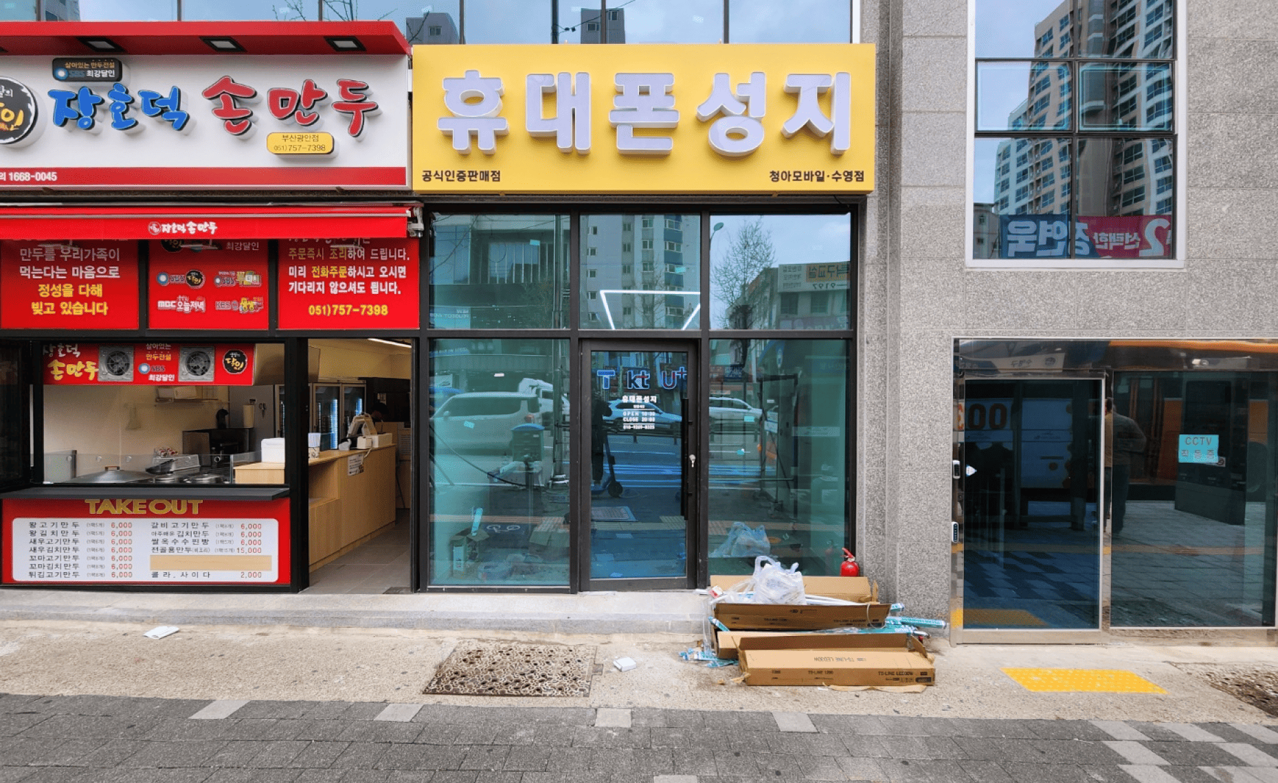 휴대폰성지 청아모바일 수영점 간판을 소개합니다.