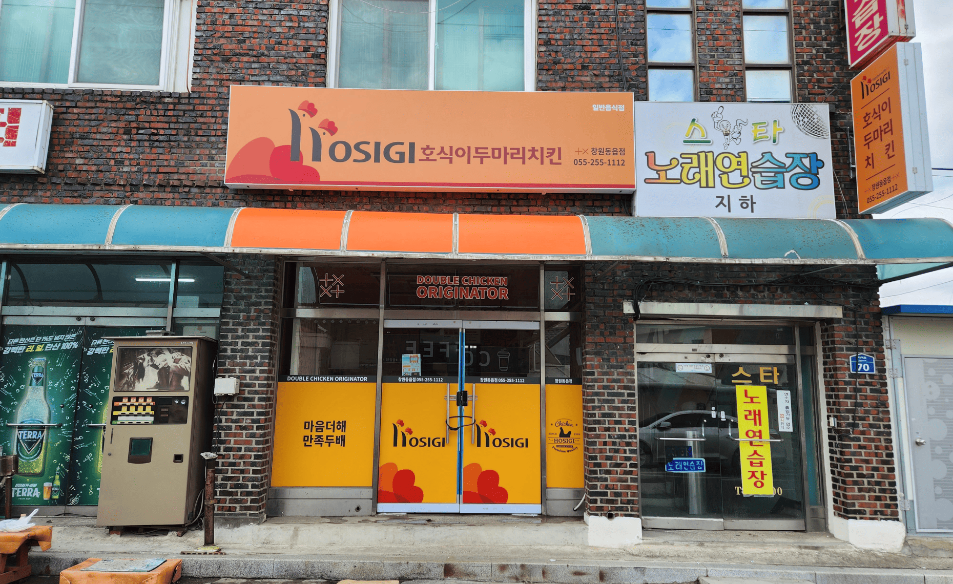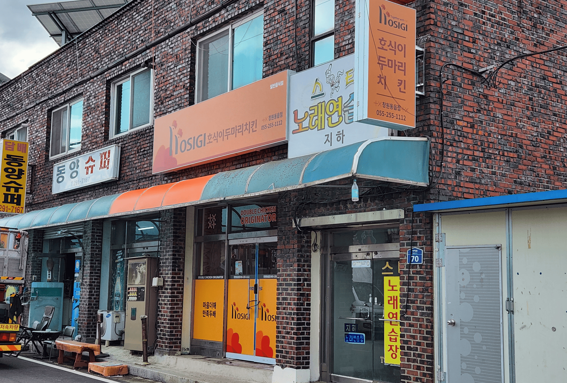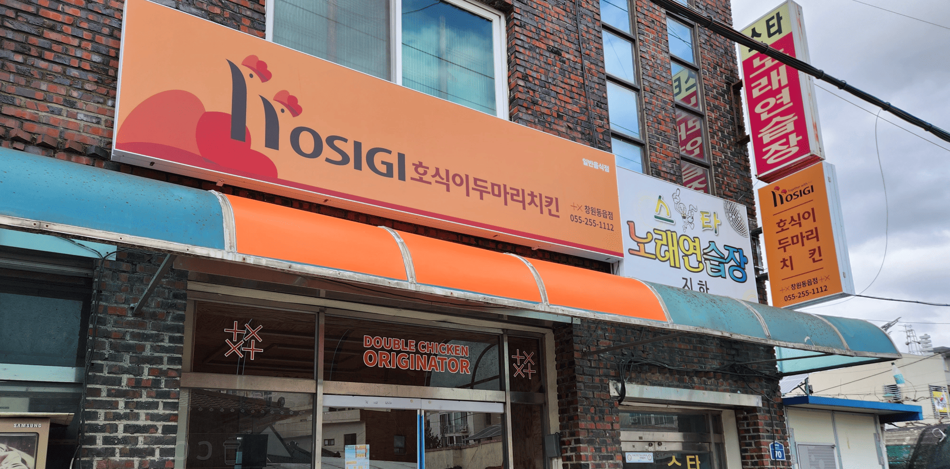 호식이두마리치킨 창원동읍점 간판을 소개합니다.