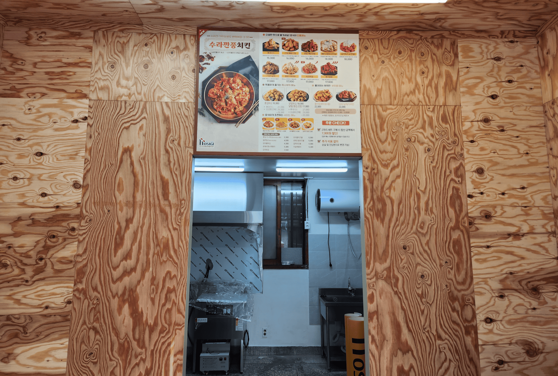 간판과 출입문 시트지 디자인이 통일감을 이루어 브랜드 인지도를 높였습니다.
