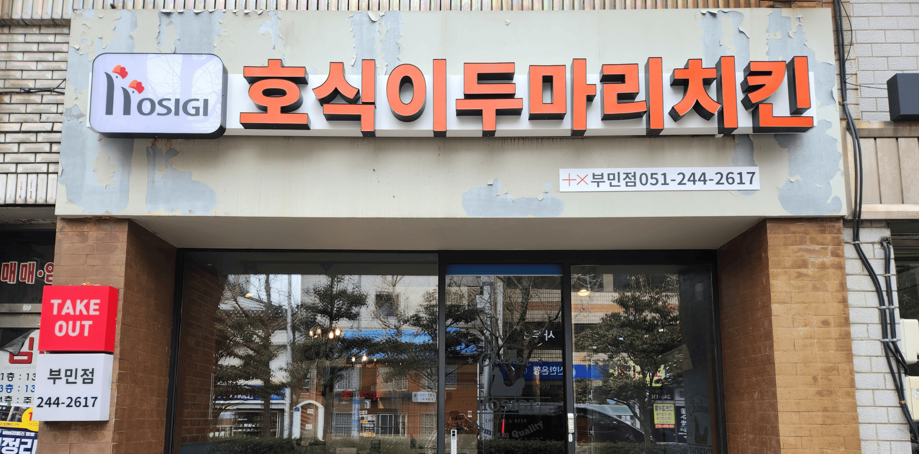 호식이두마리치킨 부민점 간판 시공 사례를 소개합니다.
