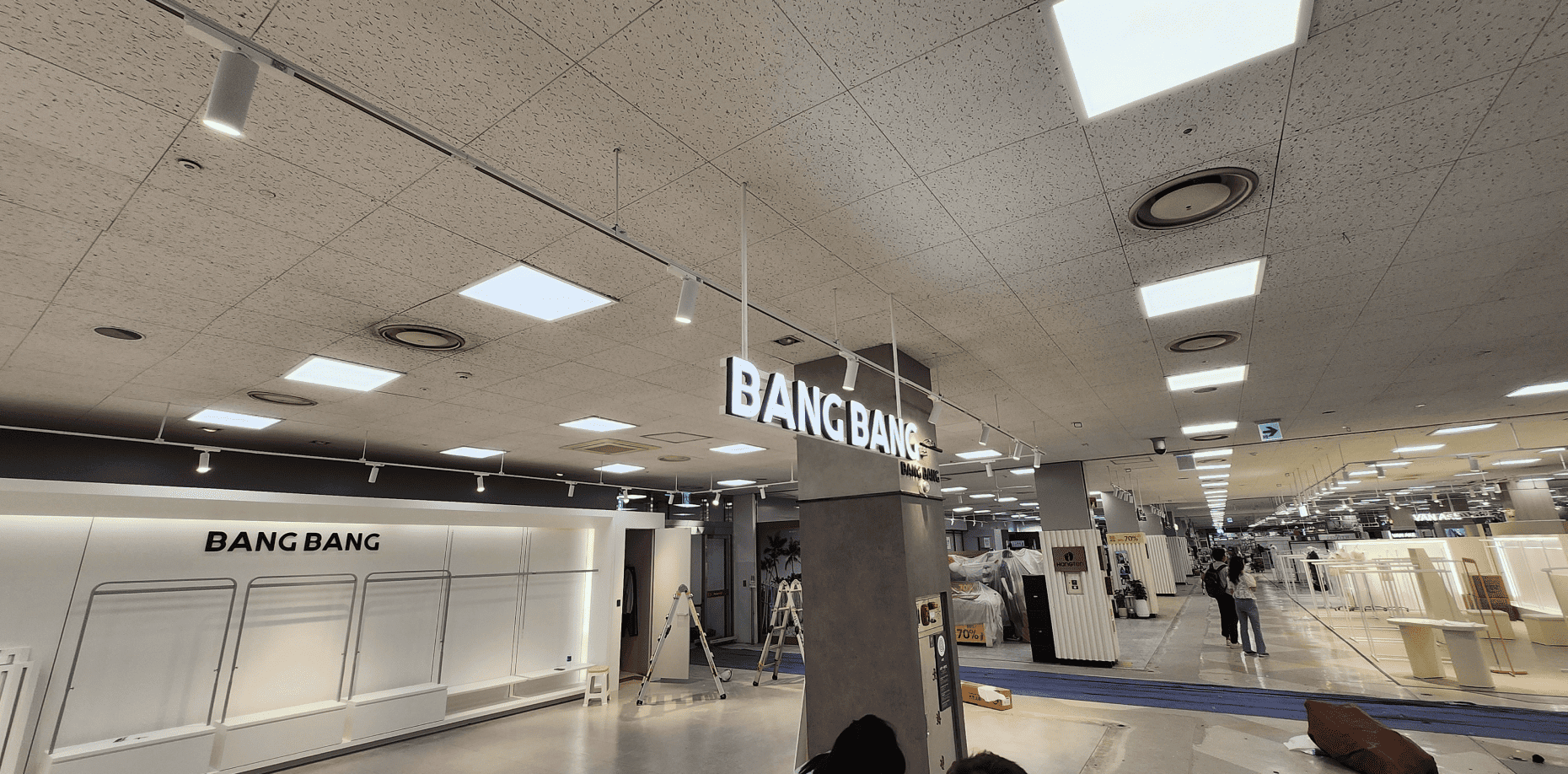 오늘은 뱅뱅 칠곡 홈플러스 매장의 간판 시공 사례를 소개합니다.