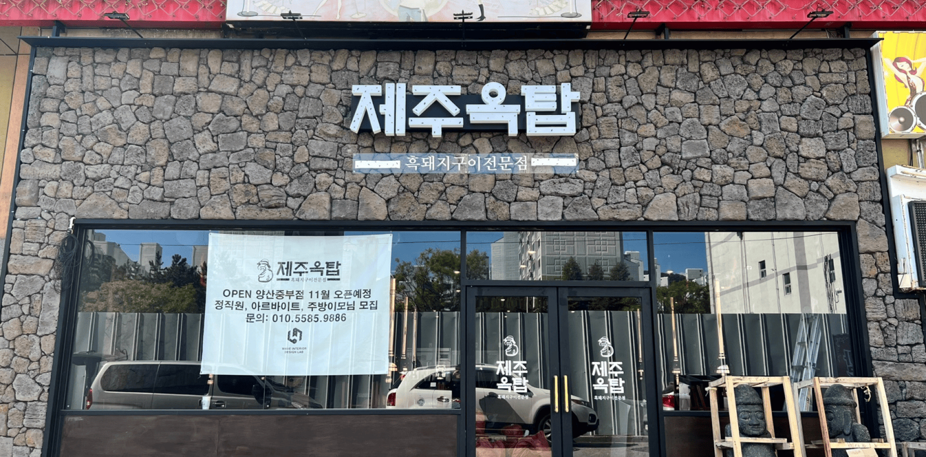 오늘은 제주옥탑 영산중부점의 외부 간판 시공 사례를 소개합니다.