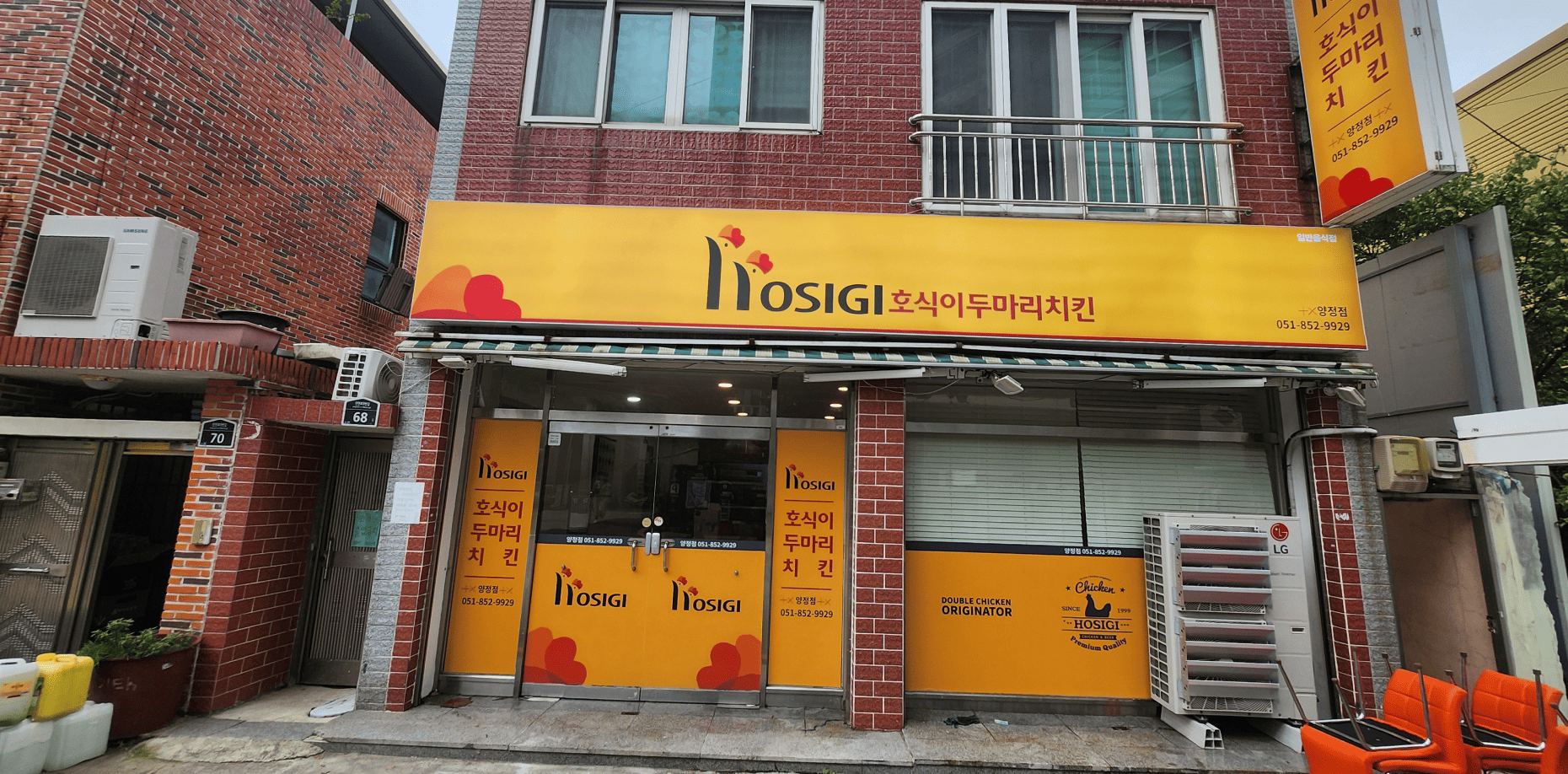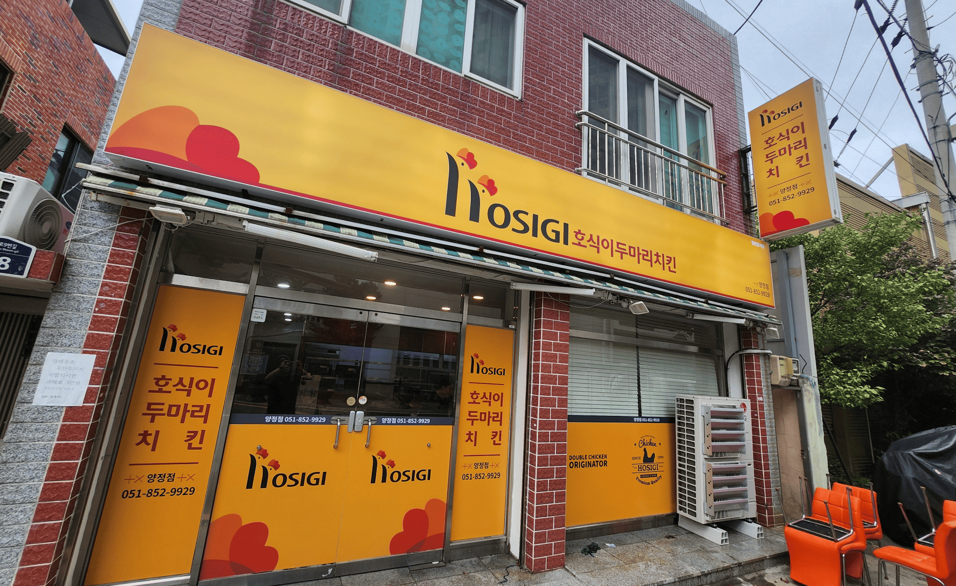 이번 시공은 호식이두마리치킨 양정점의 간판 교체 작업입니다.