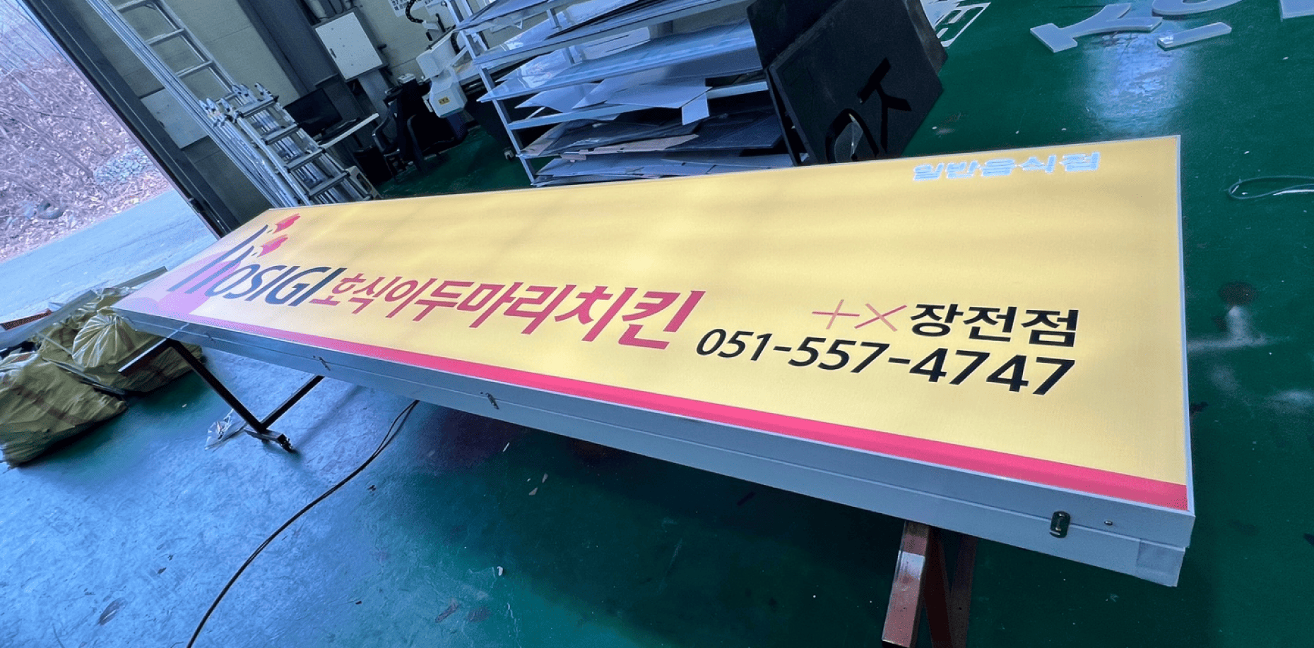 호식이두마리치킨 장전점 간판 시공 사례를 소개합니다.