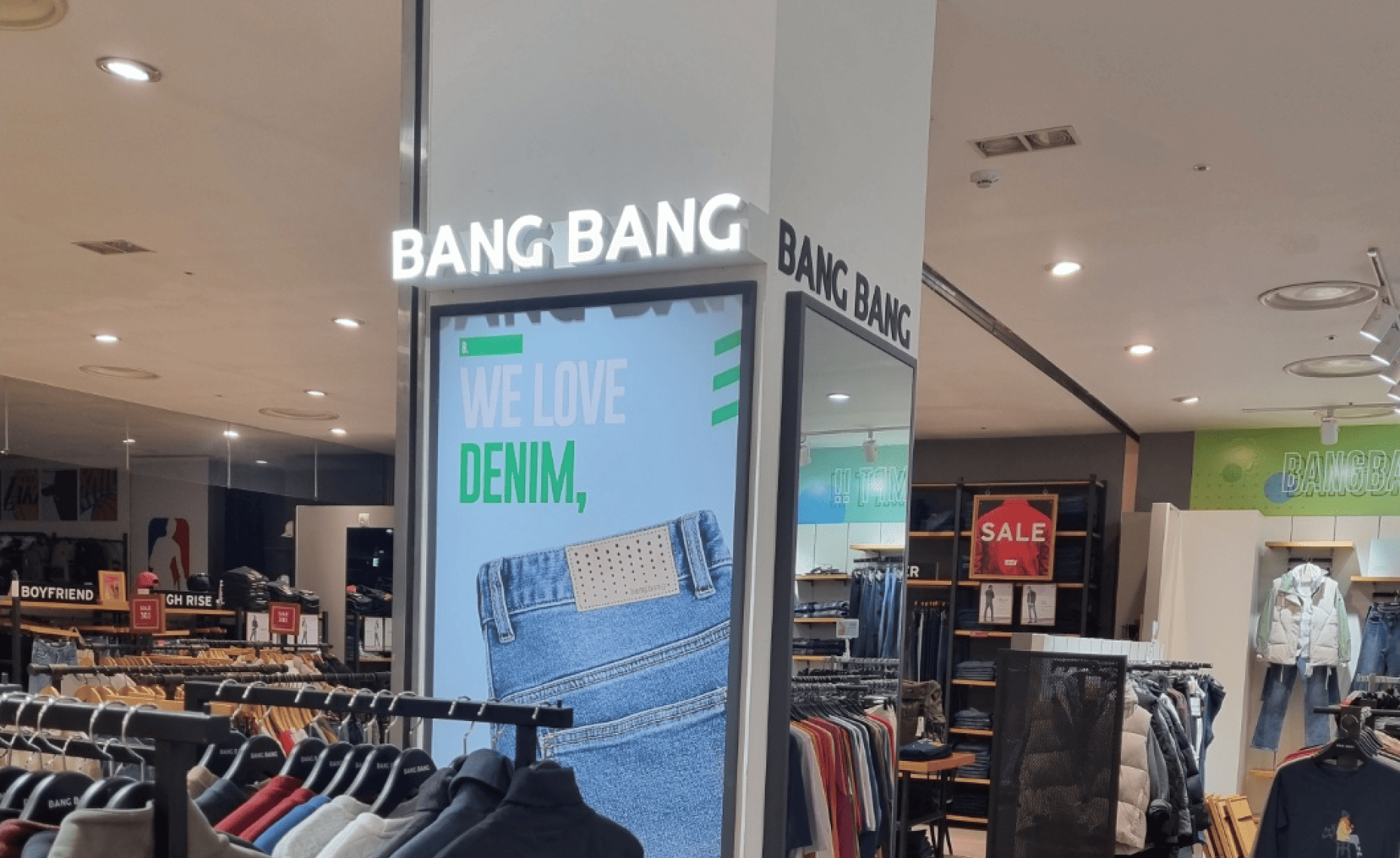 오늘은 캐주얼 패션 브랜드 뱅뱅(BANG BANG) 매장의 간판 시공 사례를 소개합니다.