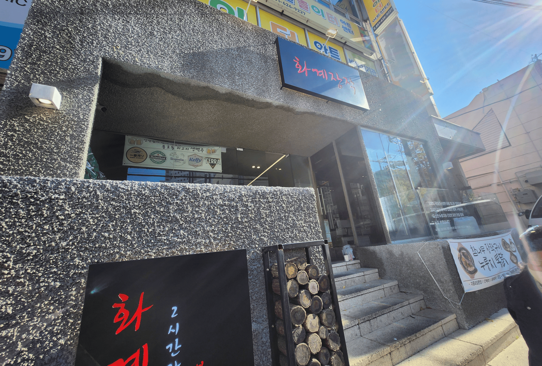 오늘은 장작구이 전문점의 강렬한 분위기를 그대로 담아낸 ‘화계장작’ 간판 시공 사례를 소개합니다.