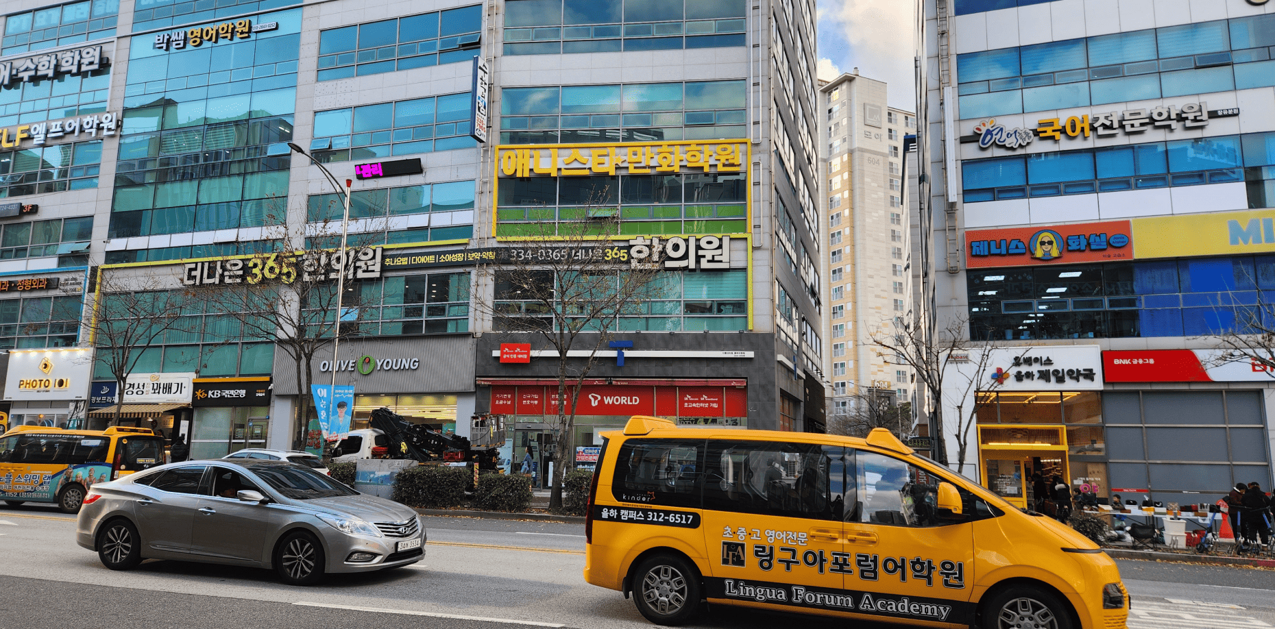 이번 프로젝트는 다층 건물 외벽에 위치한 학원 특성상
