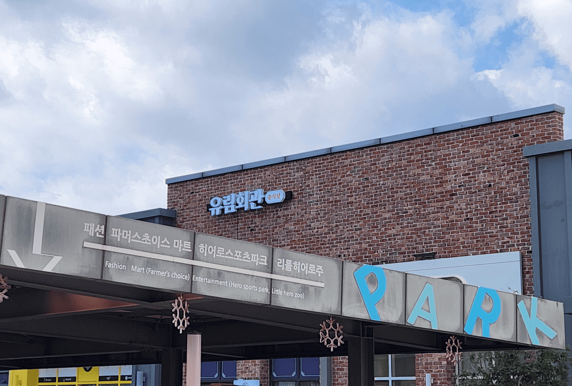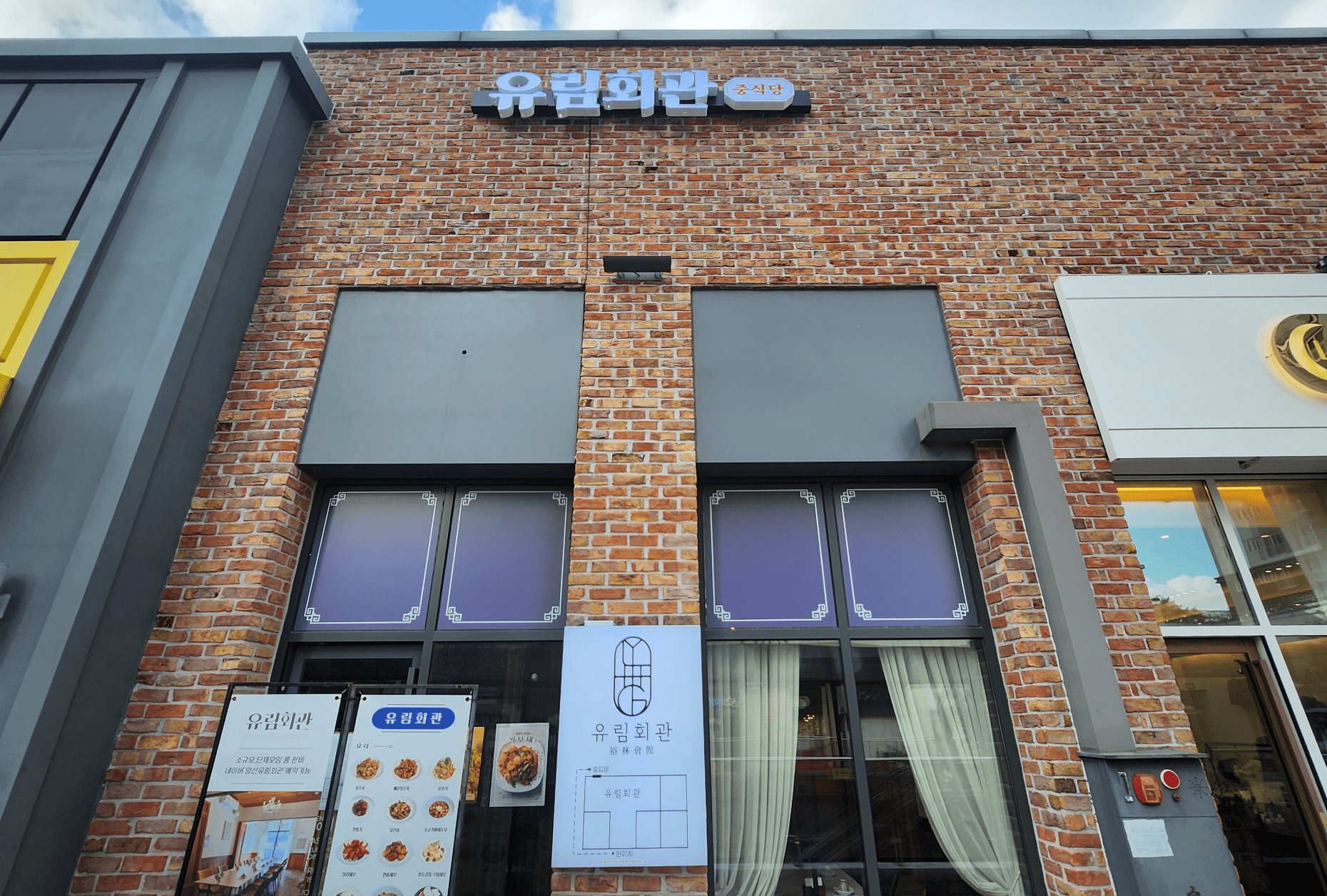 메인 간판은 벽돌 외관과 조화를 이루는 컬러 톤 위에
