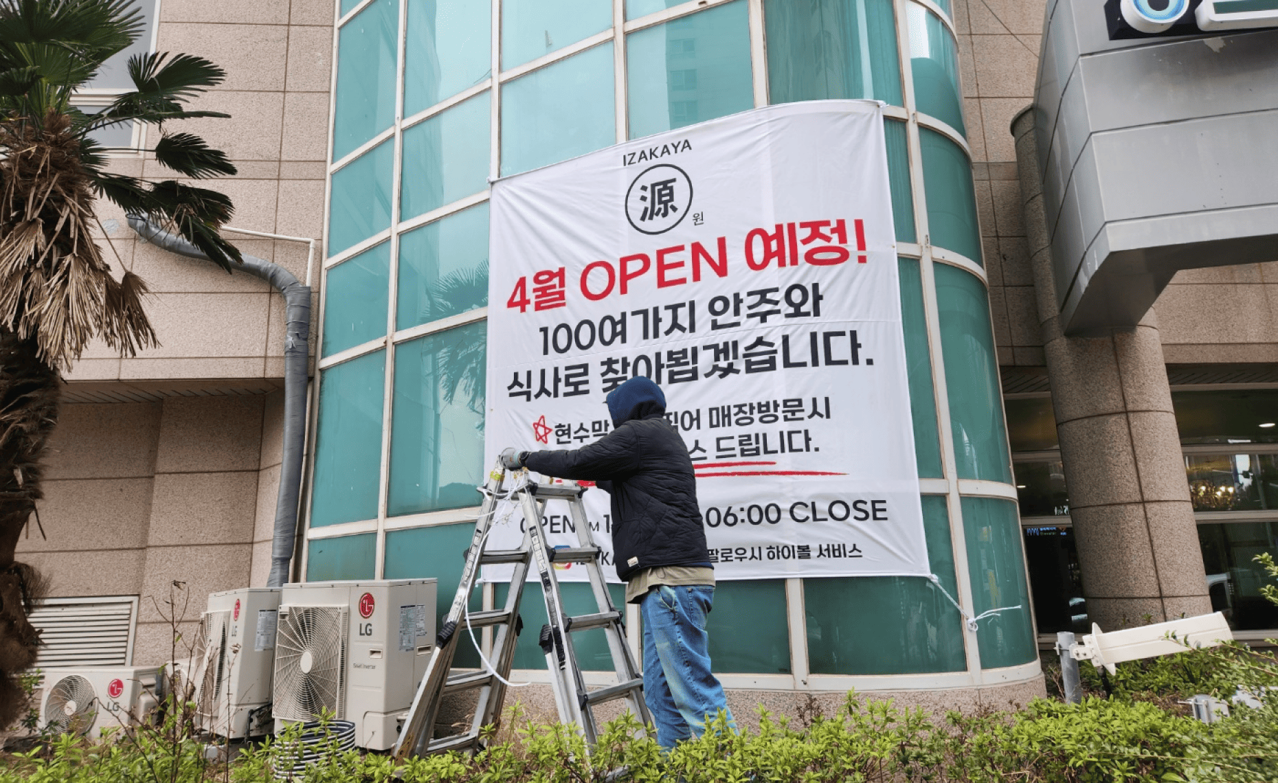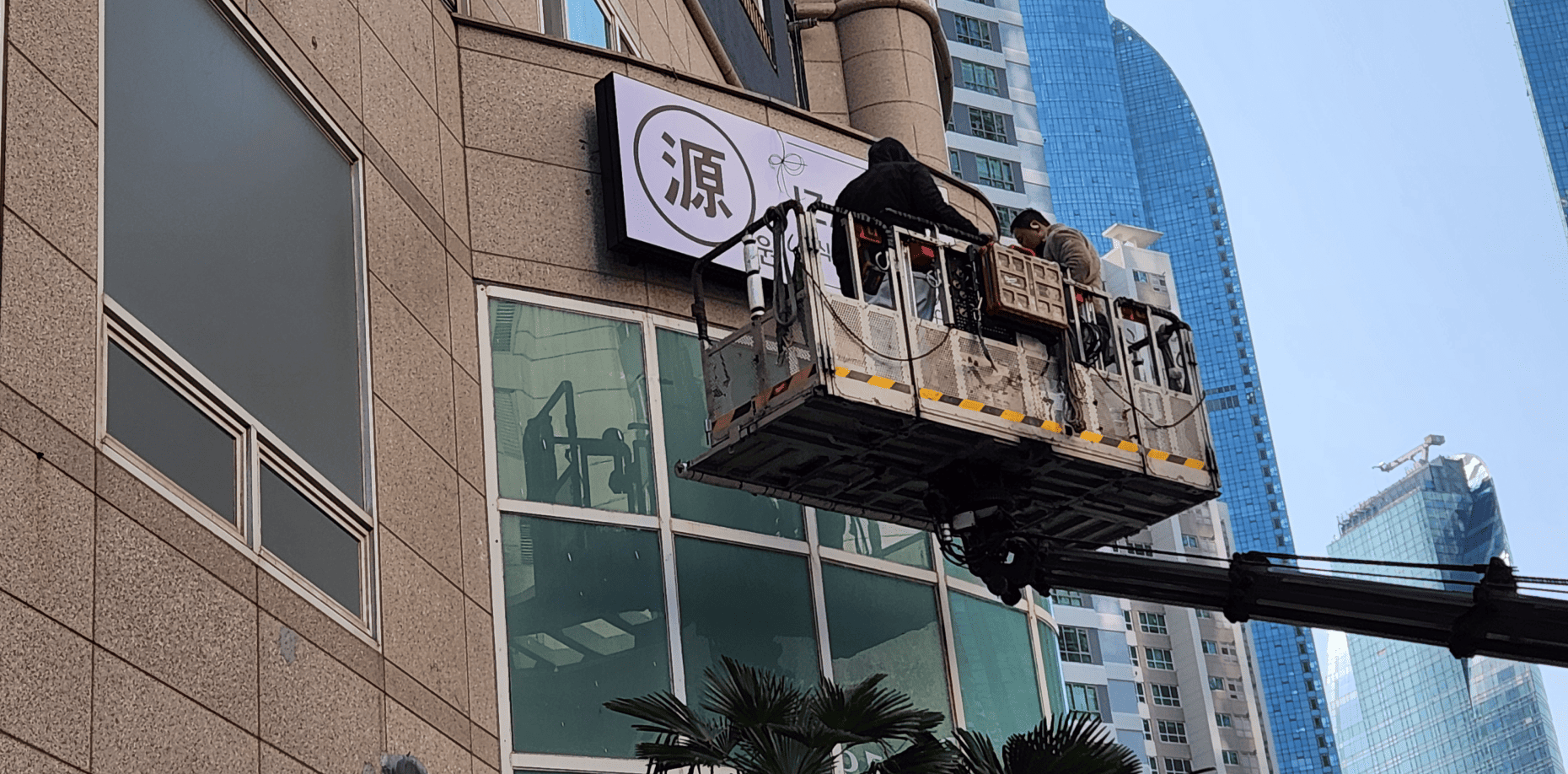 차분한 인상을 담아낸 ‘이자카야 원’ 간판 시공 사례를 소개합니다.