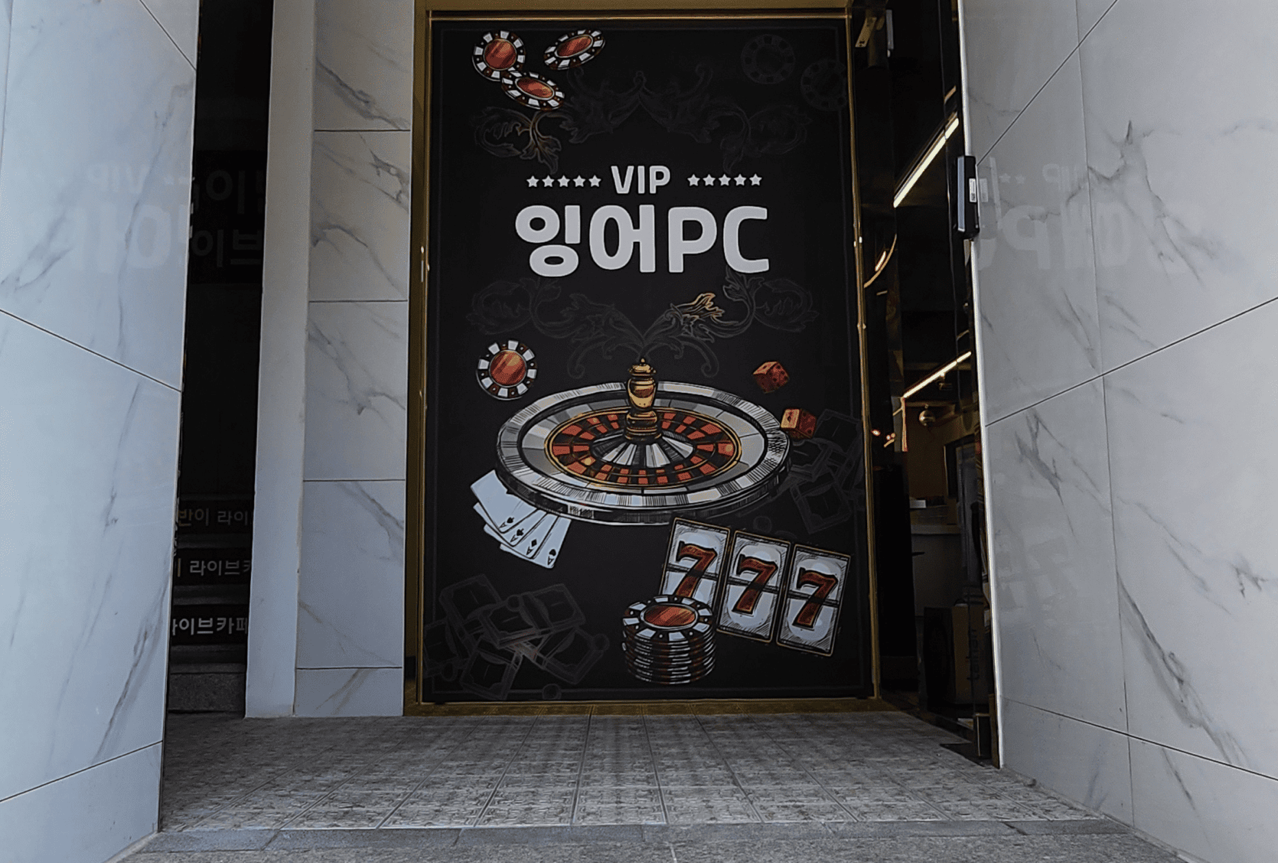 입구 상단 메인 간판과 전면 비주얼 연출을 함께 적용해