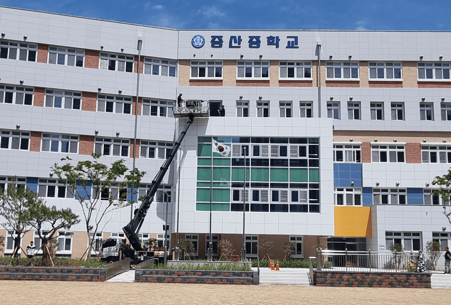 건물 전면 파사드에는 학교 명칭을 명확하게 전달할 수 있도록